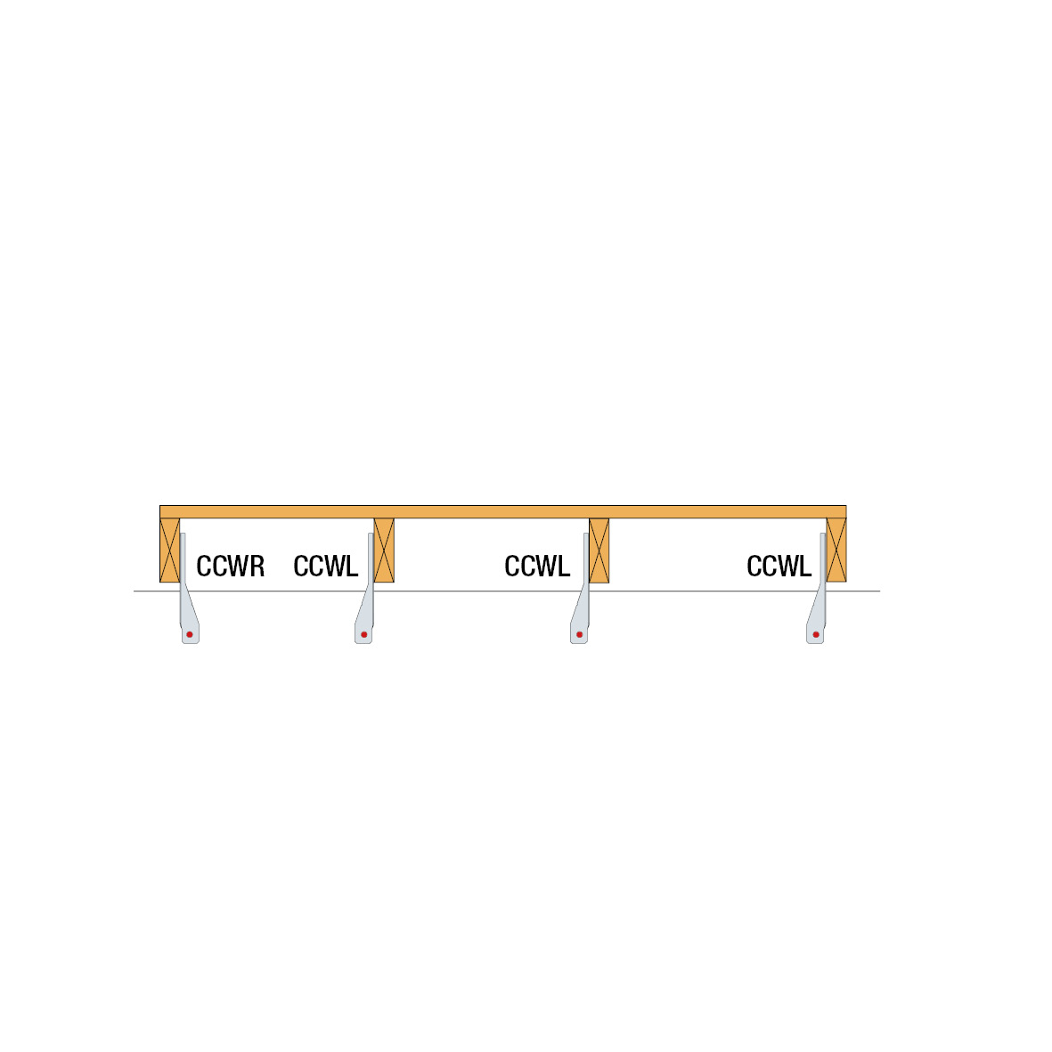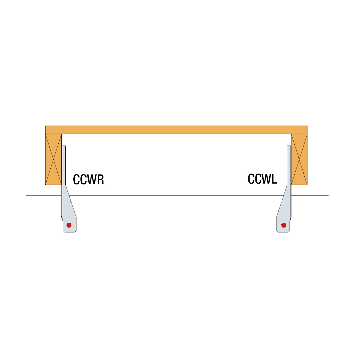 Ankers voor gordijngevels CCW, rechtse of linkse modellen, zijn hoekijzers om de houten stijlen van de gordijngevels aan een betonplaat te verbinden. Ze bieden de mogelijkheid om een afstand van 50 mm tussen de twee elementen te laten. Die ankers zijn ontworpen voor het dragen van belastingen haaks op de houtvezel (compressiespanning), en laten de stijl vrij bewegen in de richting van de vezels, tot ± 10 mm.