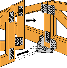 Deze beugels worden gebruikt in kapspanten met een doorsnede van 38 mm om een eindschild uit te voeren door de halve spanten van hoekkepers en karbelen met elkaar te verbinden (2 hoekkepers of 1 hoekkeper + 1 karbeel). De karakteristieke waarden gelden voor verschillende plaatsingswijzen.