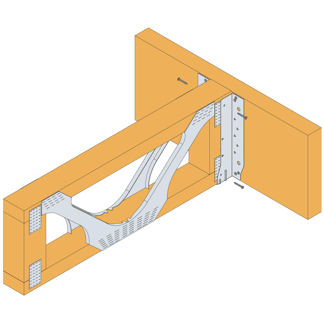 → The enhanced installation requires a backer block to be installed onto the front face of the supporting I-joist, and the specified number of triangular holes to be filled. The installation of the backer block is to be in accordance to the I-Joist manufacturers specification