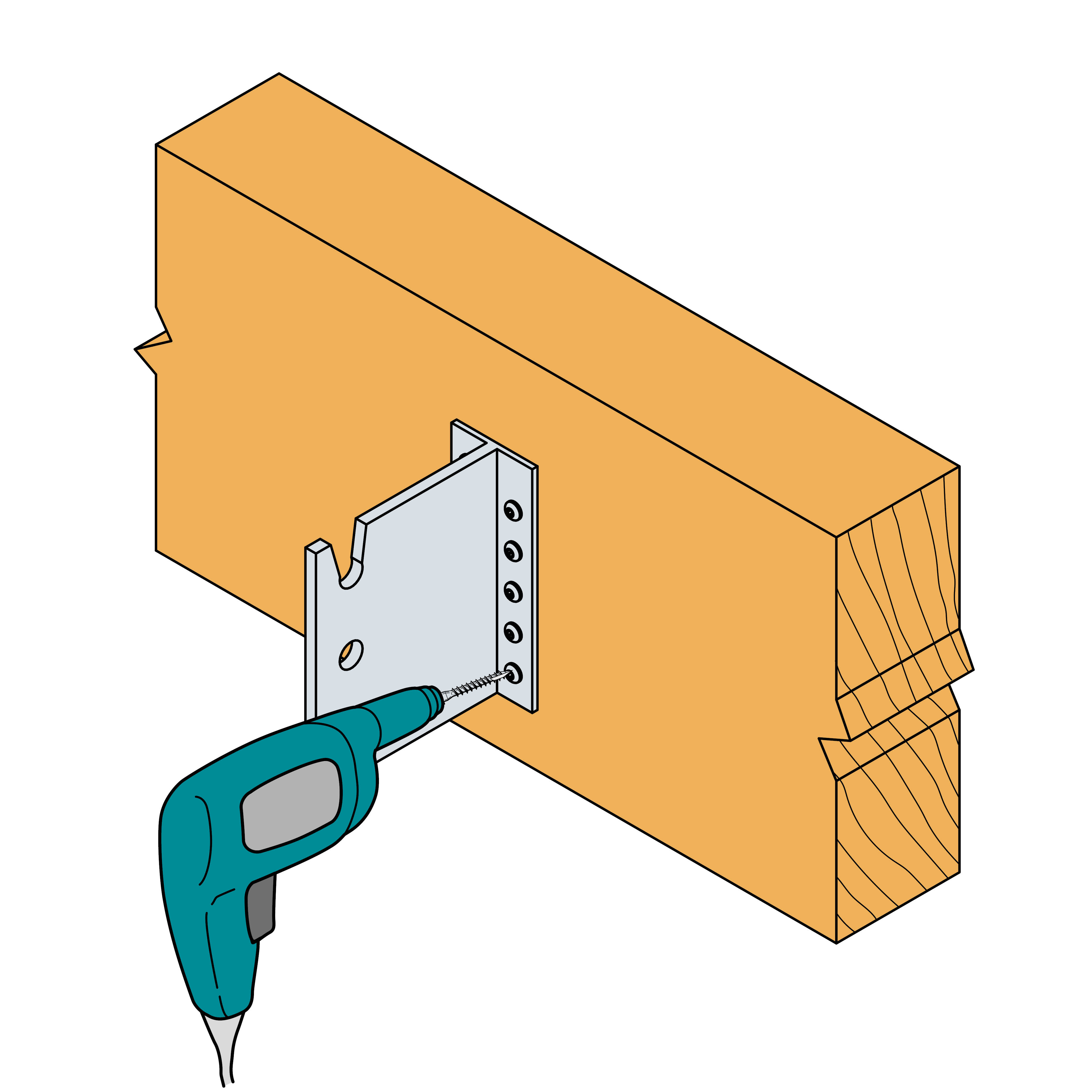 - Schroeven en pennen Ø 8 mm of Ø 12 mm.