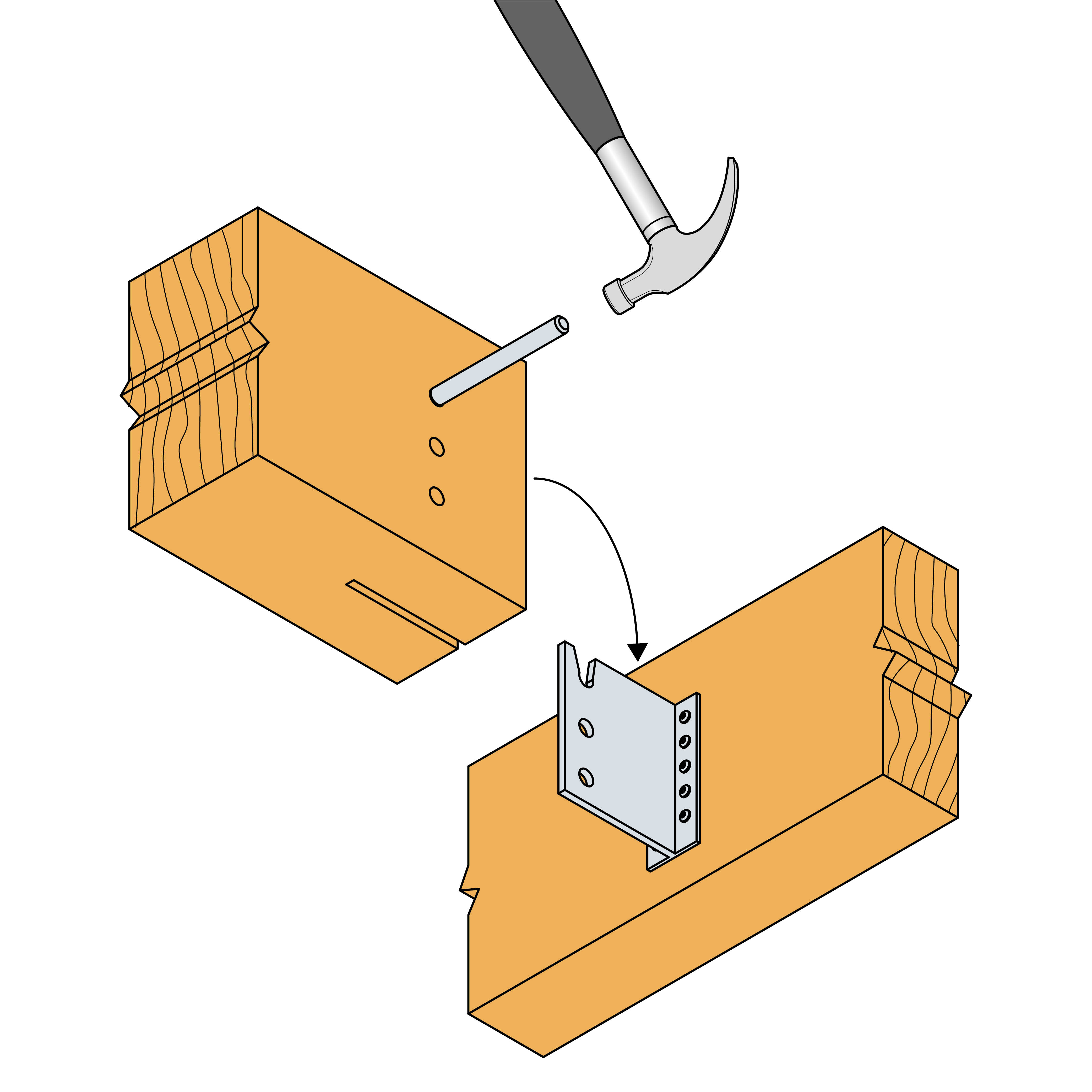 - Beugels met insteekblad van het type BT4 zijn bijzonder geschikt voor hout-op-houtaansluitingen waarbij de richting van de houtvezels loodrecht verloopt (bijv. kolommen). De nagels moeten dan verspringend worden geplaatst.