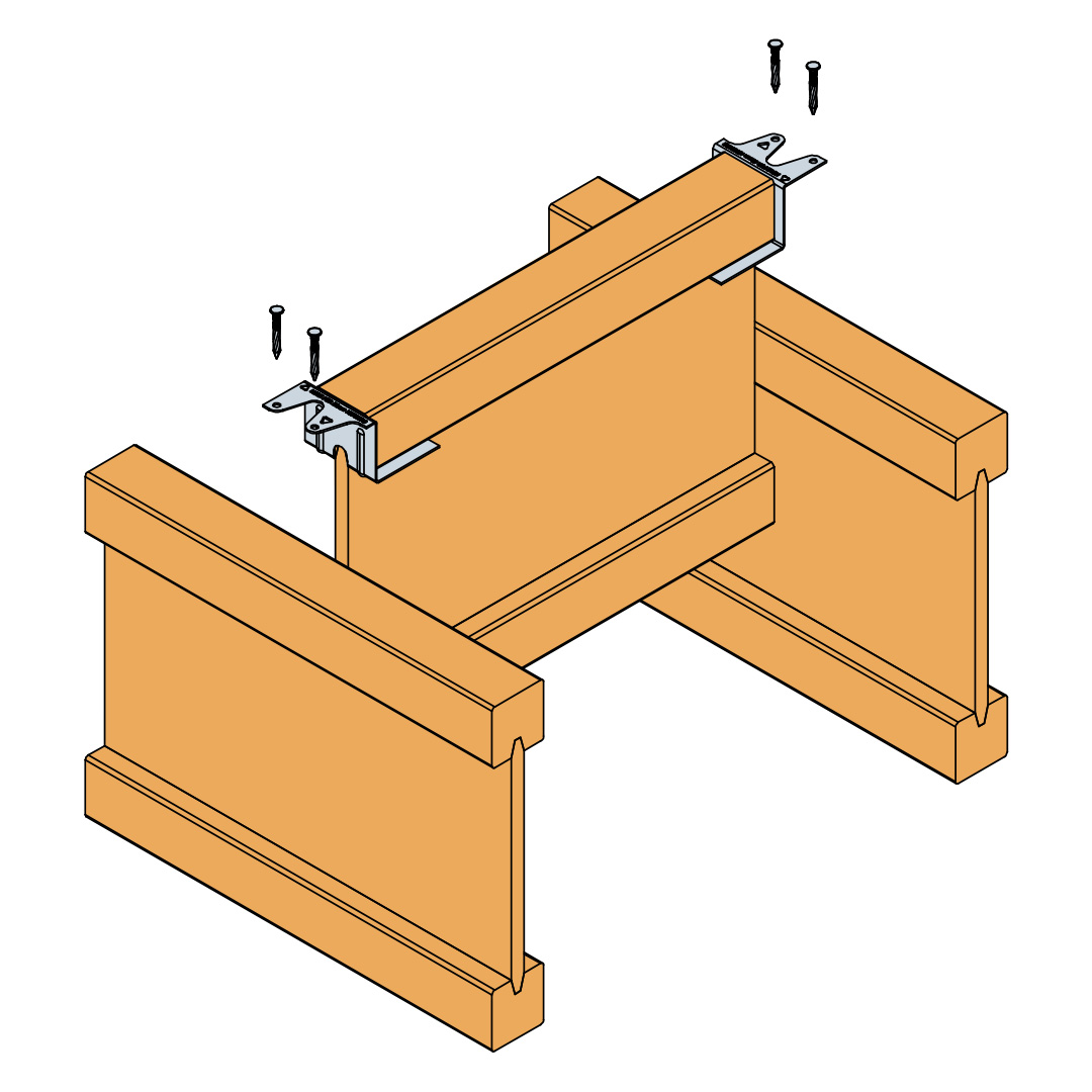 3. Bevestig de clips over de bovengording van de I-balken van het bintwerk met behulp van getorste nagels N3.75x30.