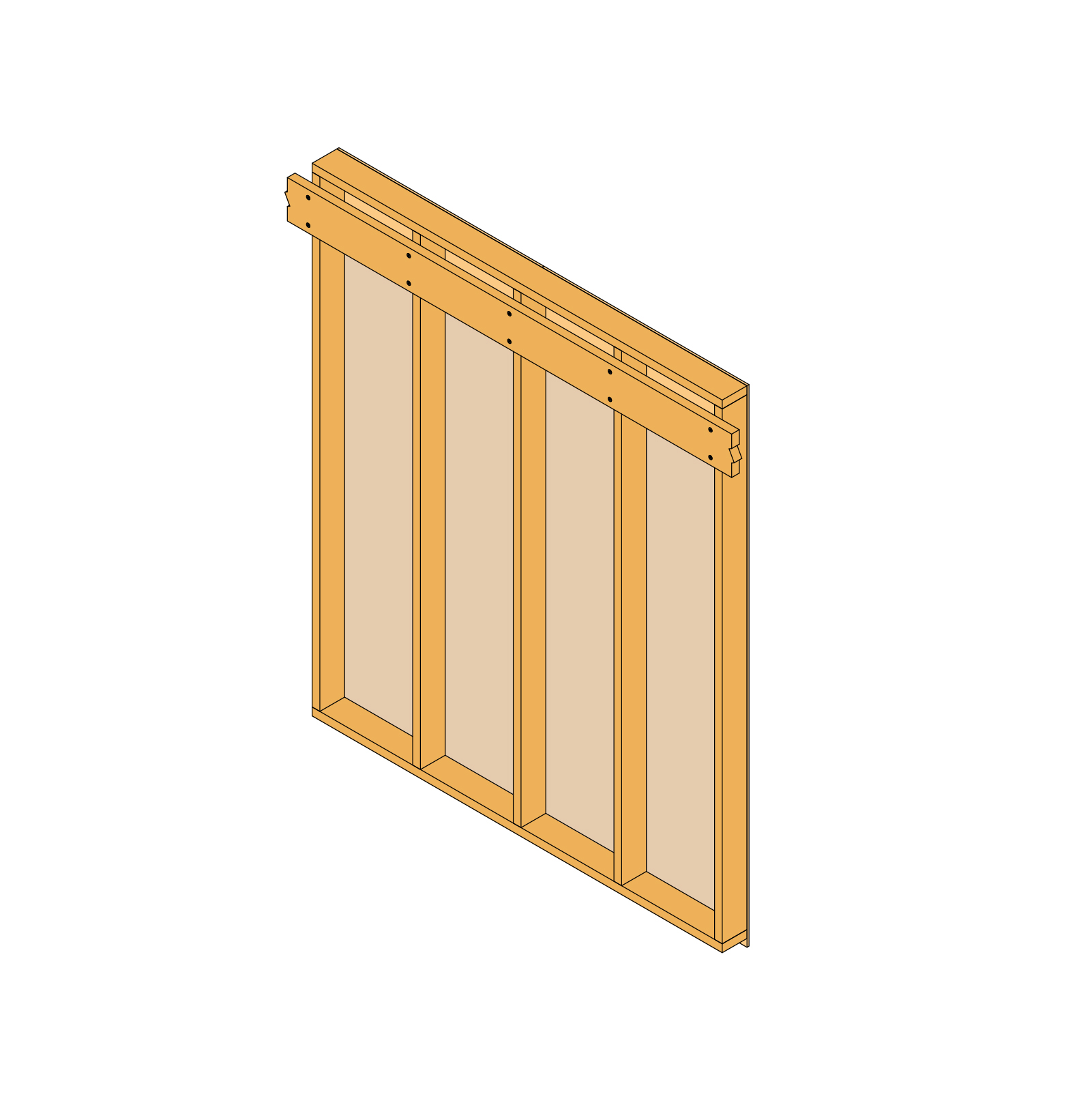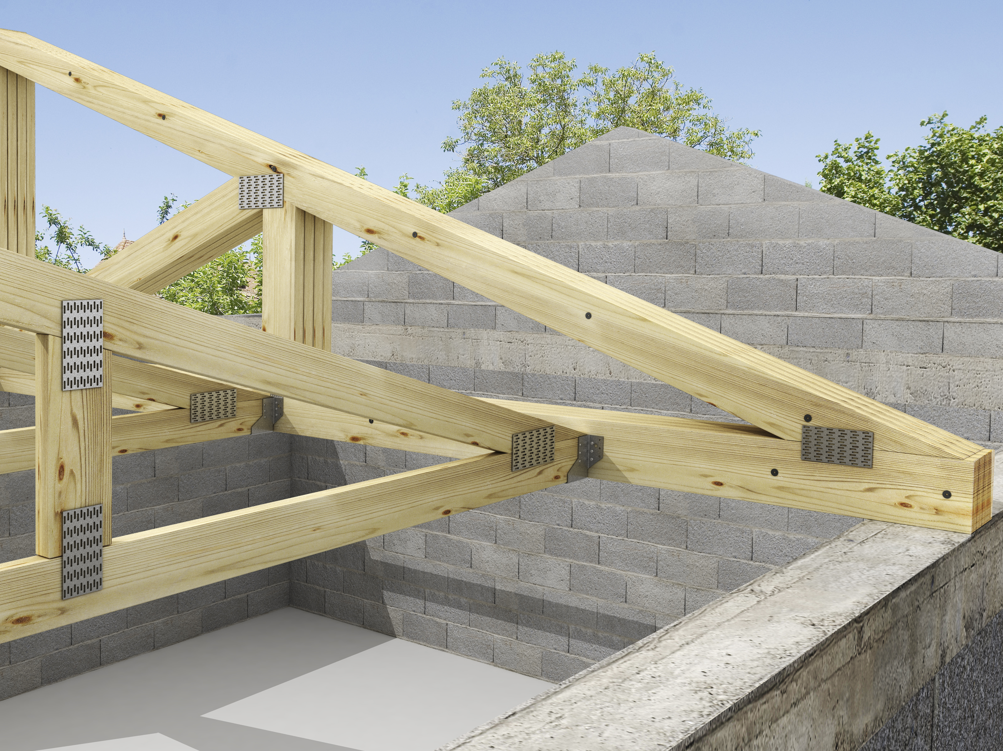 - Bevestiging van veelvuldige houten elementen (houtskeletstijlen, kapspanten, ...).