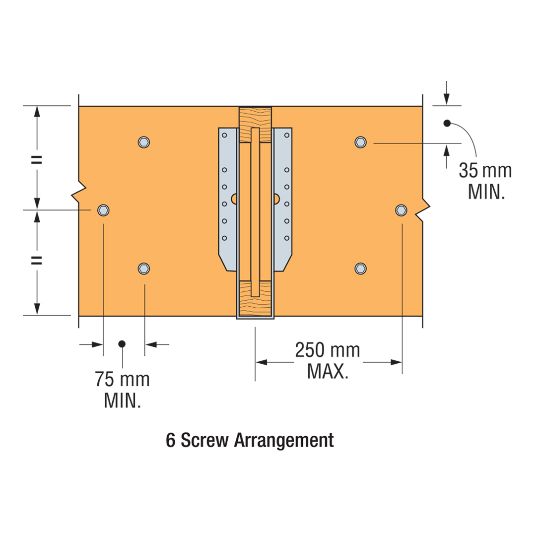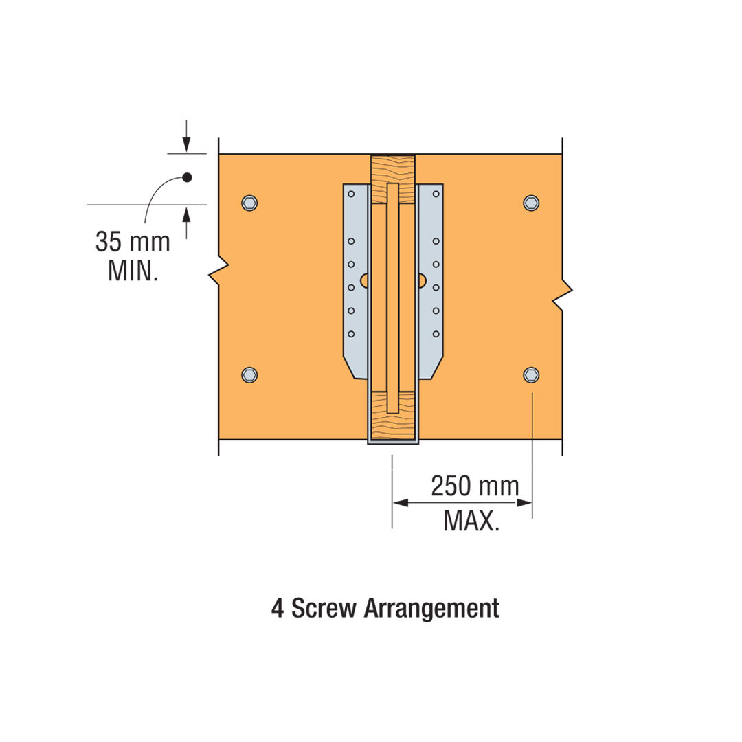 - De schroeven kunnen tot 75 mm verplaatst worden om andere verbindingsstukken of houtgebreken te ontwijken.