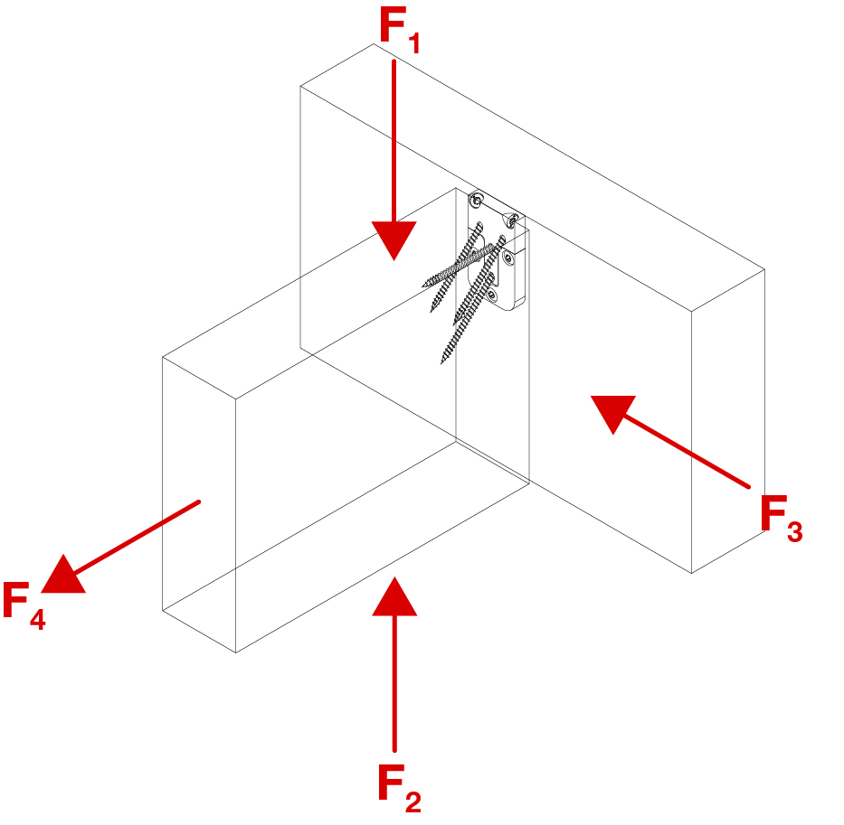 If the force is only in the F1 direction, the two optional screws from above can be left out.