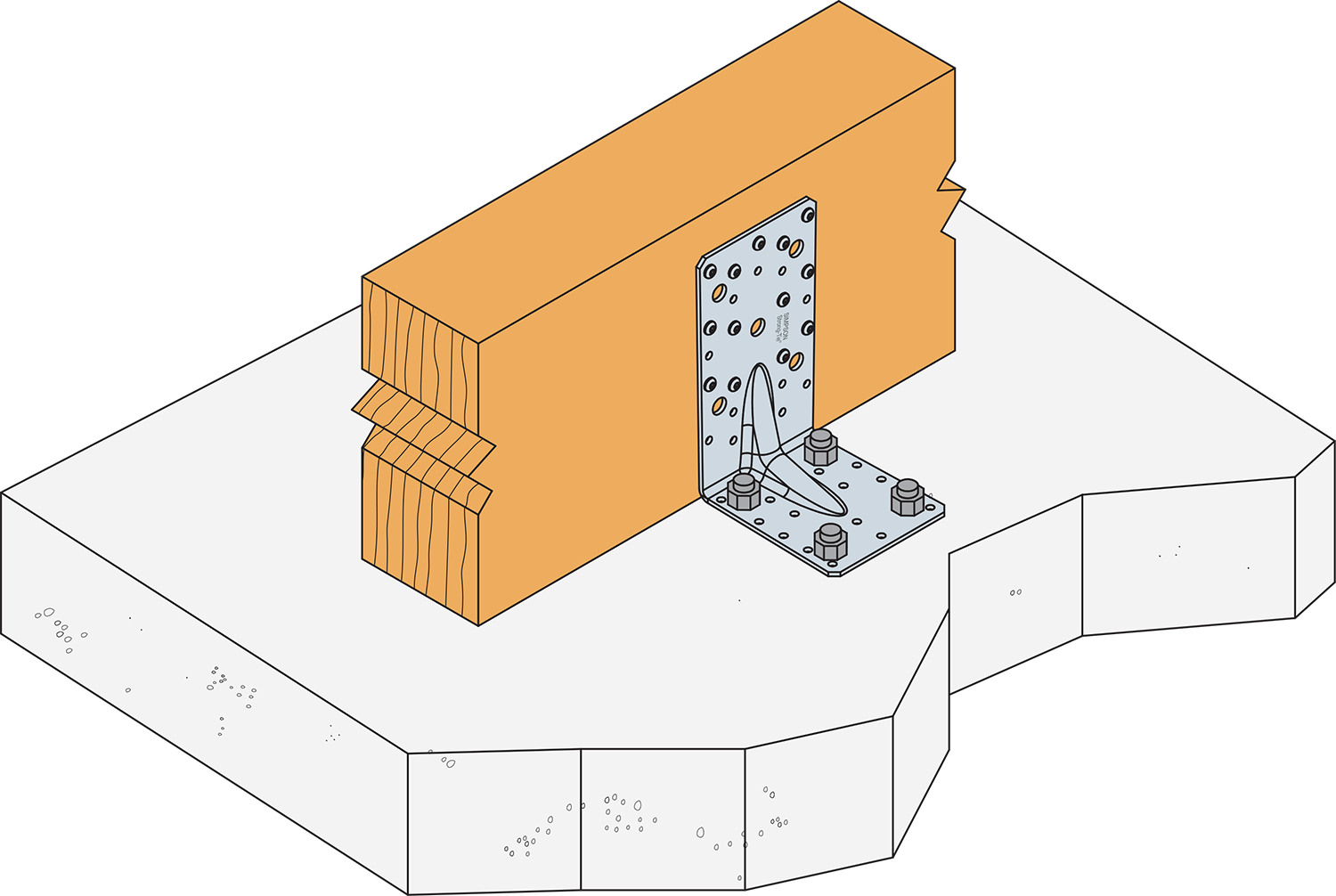 De vereiste ontwerpweerstand van de bout R#,d wordt bepaald met (boutfactor x ontwerpbelasting verbinding F#,d) voor de vereiste belastingsrichting en het bevestigingselement. Zie het Simpson Strong-Tie ankerassortiment voor geschikte ankers. Typische ankeroplossingen, afhankelijk van het betontype, de hart- en randafstanden.