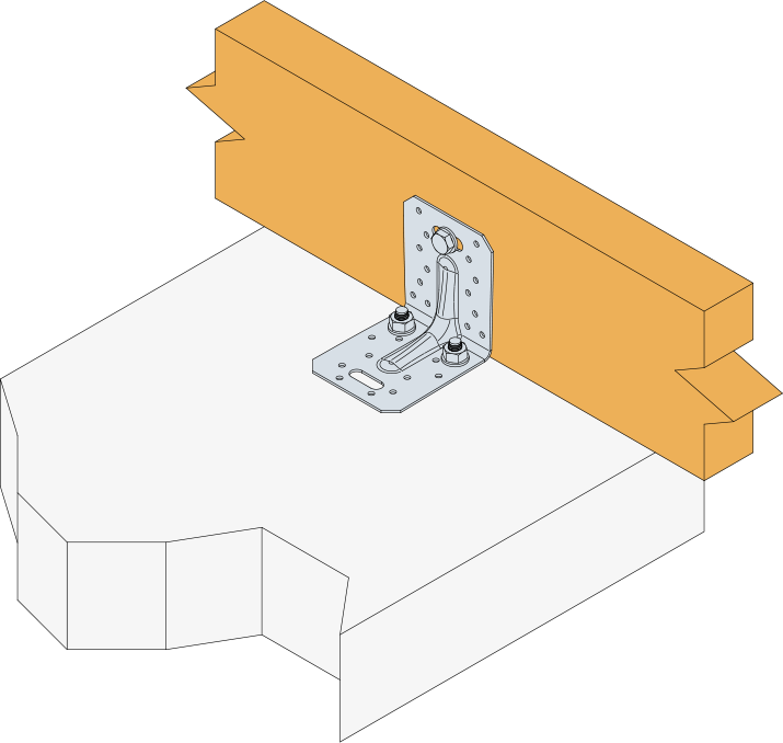 * Zie de kolommen van de tabel met karakteristieke waarden voor de types bevestigingselementen die kunnen worden gebruikt in Flens A. De waarden verschillen afhankelijk van het gebruikte type bevestigingselement. De vereiste ontwerpweerstand van de bout R#,d wordt bepaald met (boutfactor x ontwerpbelasting verbinding F#,d) voor de vereiste belastingsrichting en het bevestigingselement. Zie het Simpson Strong-Tie ankerassortiment voor geschikte ankers. Typische ankeroplossingen, afhankelijk van het betontype, de hart- en randafstanden.