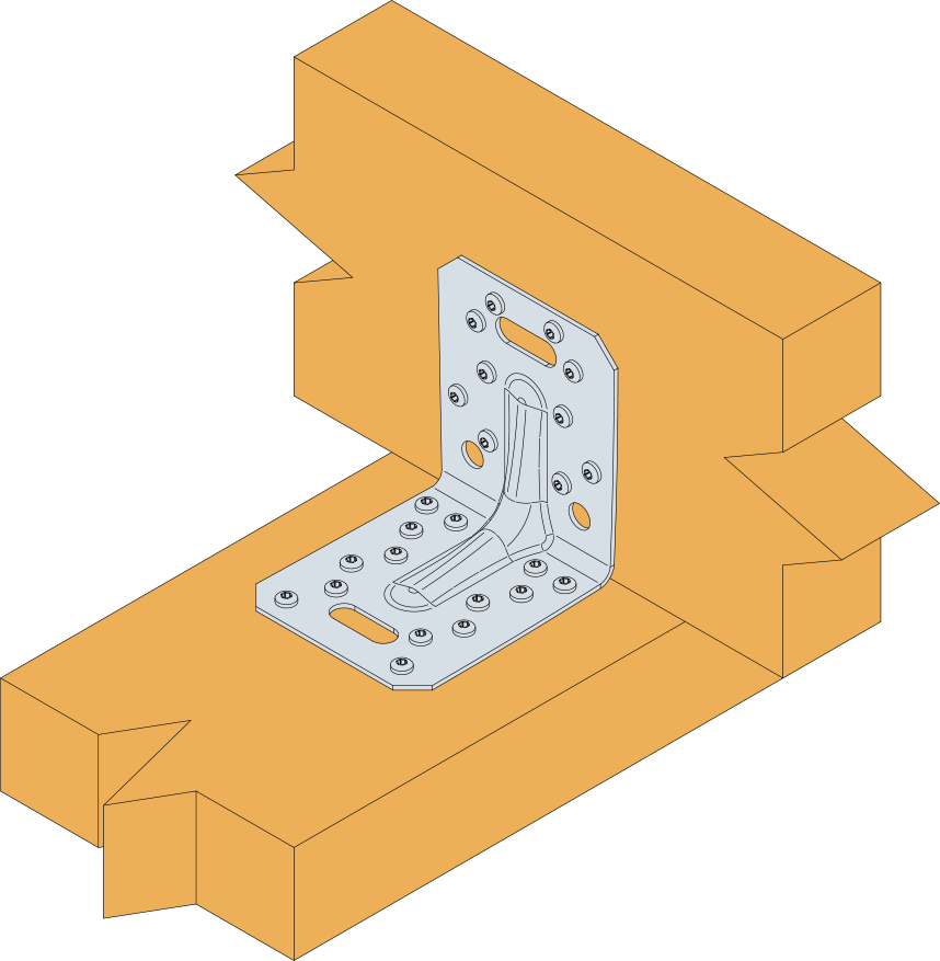 Het verstevigde hoekijzer ACRL10520 is geschikt voor draagstructuren in de vakwerk- en houtskeletbouw. De aanwezigheid van de sleufgaten in elke vleugel maakt zijdelingse verstelling mogelijk.