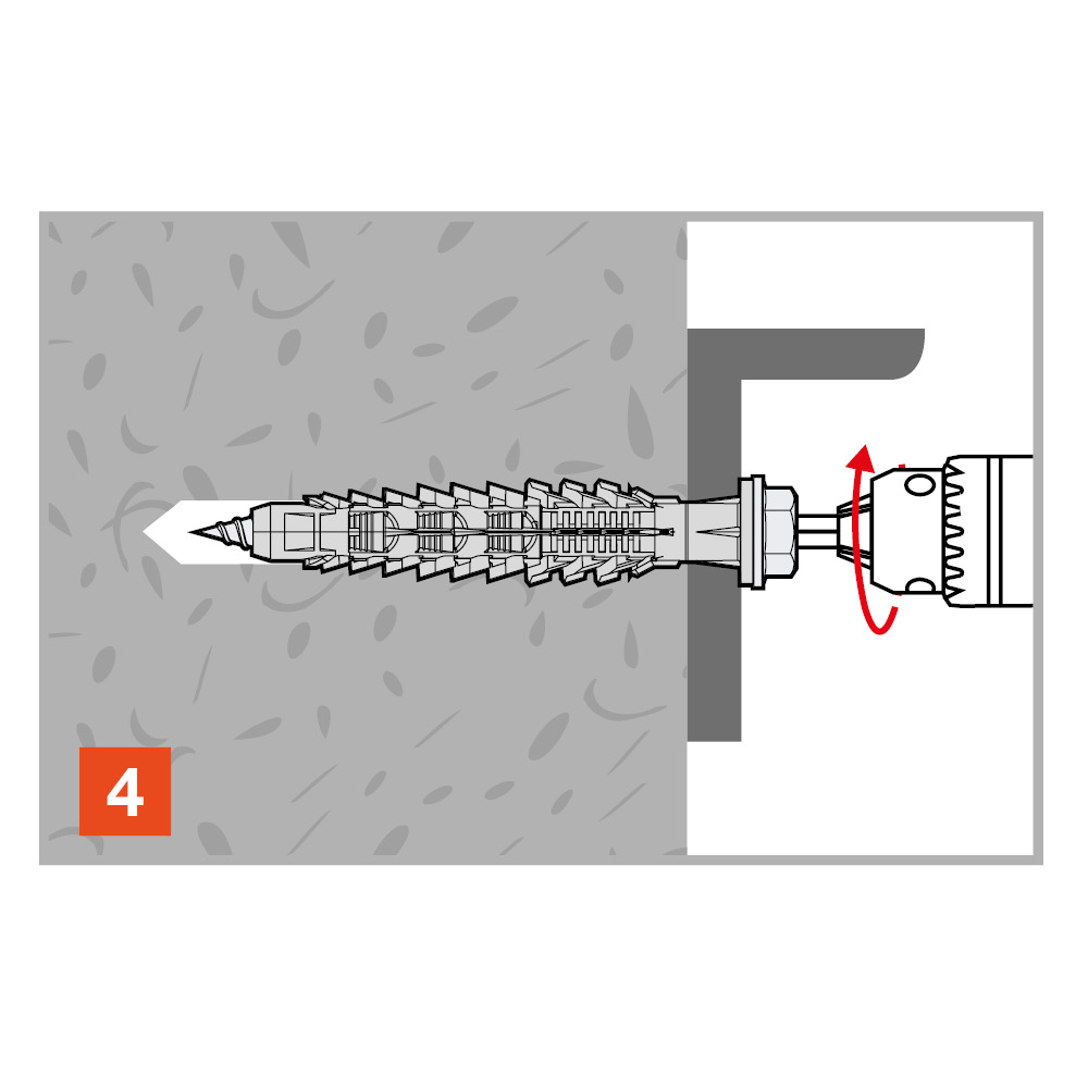 Met de lange nylonplug X3 A4 kunnen dunne of dikke elementen, met 3 mogelijke verankeringsdieptes per lengte, op elk type volle of holle ondergrond worden bevestigd.