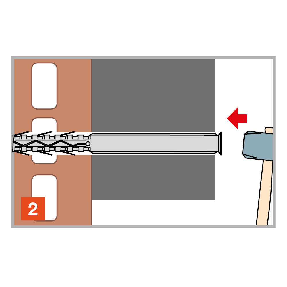 De lange nylonplug TUP is geschikt voor het bevestigen van dunne of dikke elementen op elk type holle of volle ondergrond.