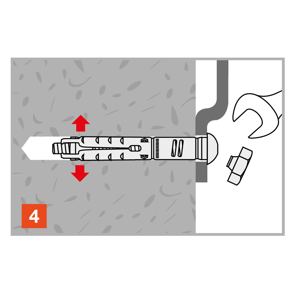 Referentie Product Reference Dimensions [ØxL] [mm] Ø drilling hole [d0] [mm] Min. drill depth [h1] [mm] Ø drilling fixture [df] [mm] Wrench size [SW] [mm] Embedment depth [hef] [mm] Min. support thickness [hmin] [mm]