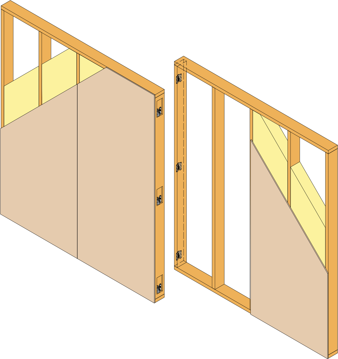 - Verbinding van houtskeletstijlen: aanbevolen voor “gesloten” muren (na het aanbrengen van binnen- en buitenbekleding op de muur),