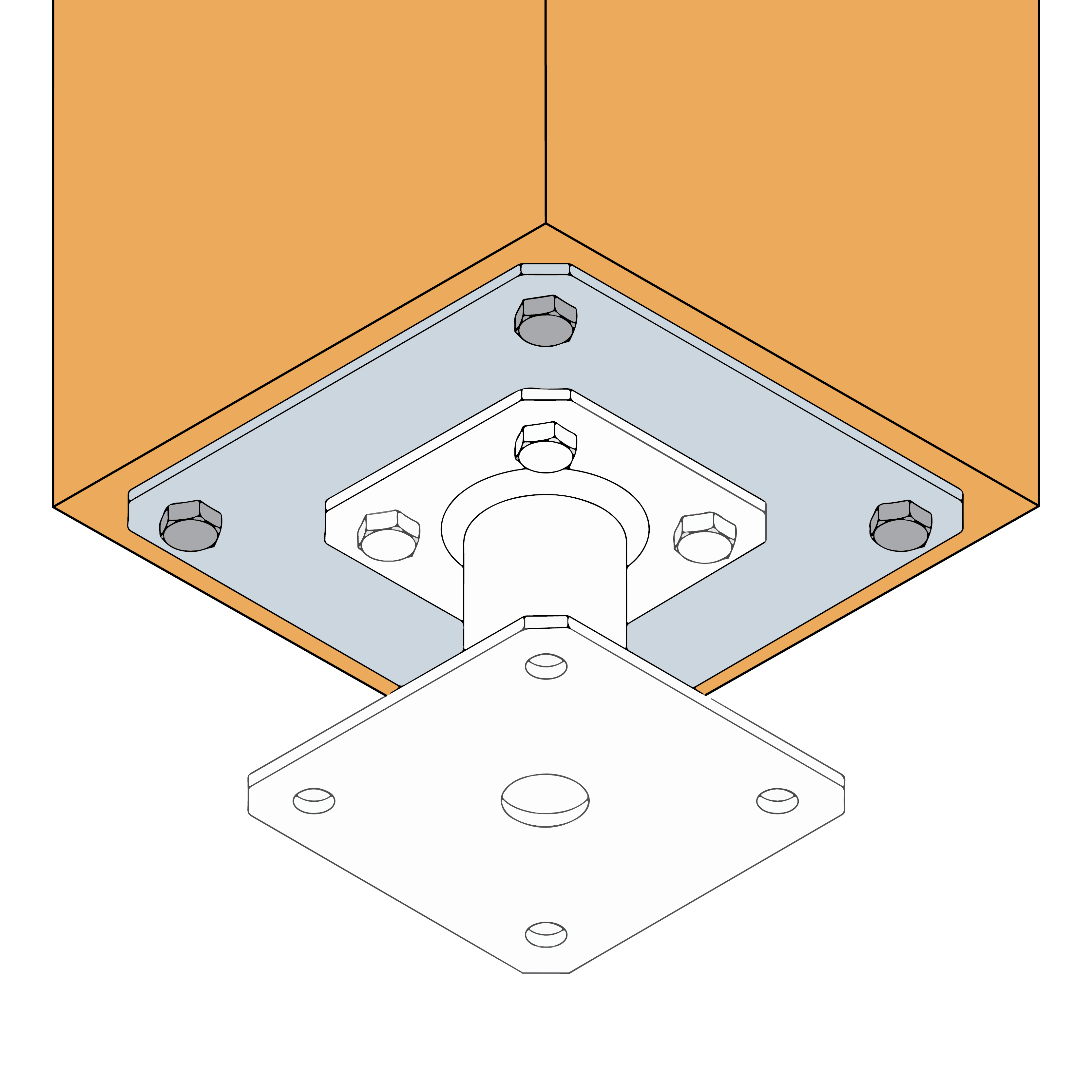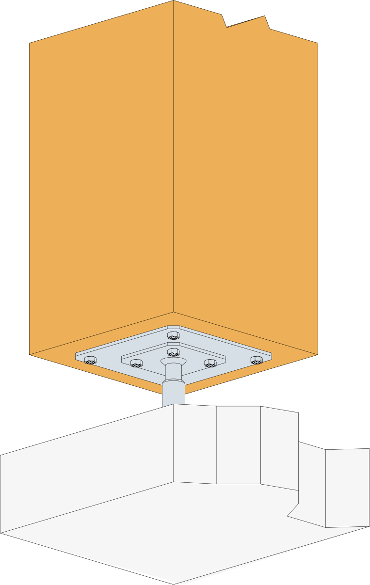 PLPP180 is een optioneel plaatje voor onze kolomvoeten. Het wordt aanbevolen wanneer de houten kolom een doorsnede heeft van meer dan 180x180 mm en maximaal 250x250 mm.