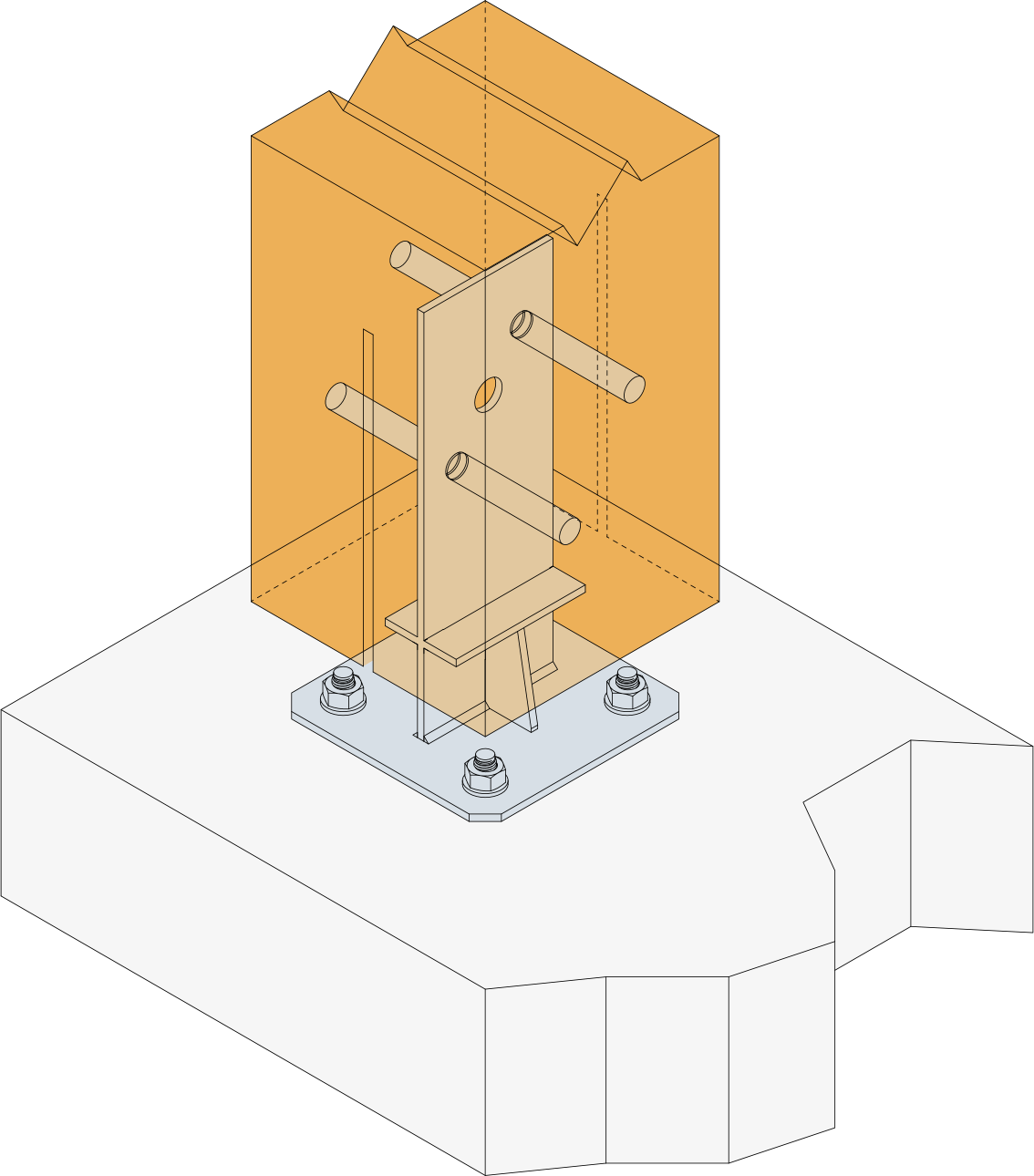 De pennen helpen de op onze verbinders uitgeoefende belasting opvangen. Het is van belang de aanbevolen plaatsingsinstructies in de volgende ETA's stipt te volgen: ETA-07/0245 (Beugels met insteekblad) en ETA-07/02850 (Kolomvoeten).
