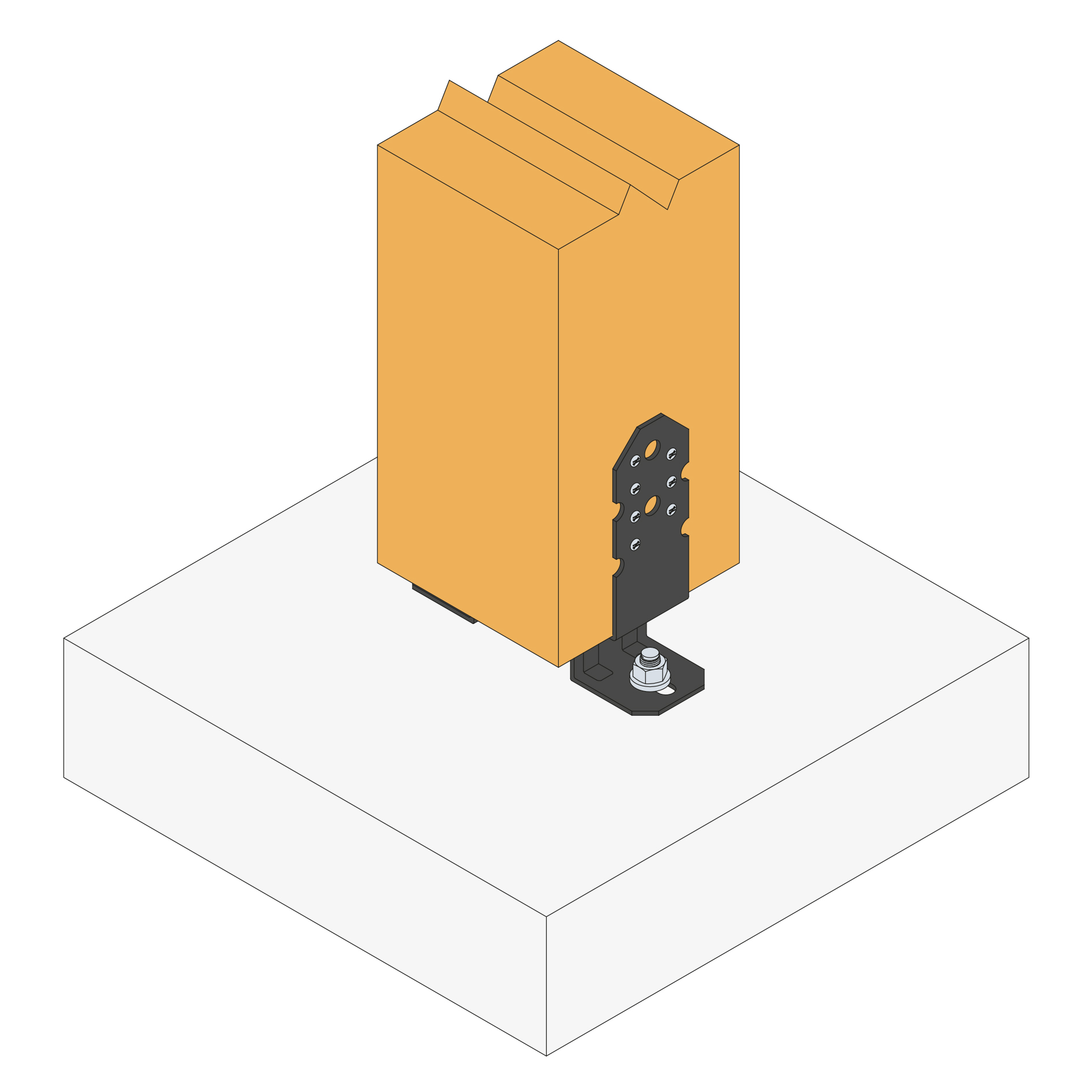 - Maakt een kleinere afstand tussen betonnen ondergrond en houten kolom mogelijk (50 mm),