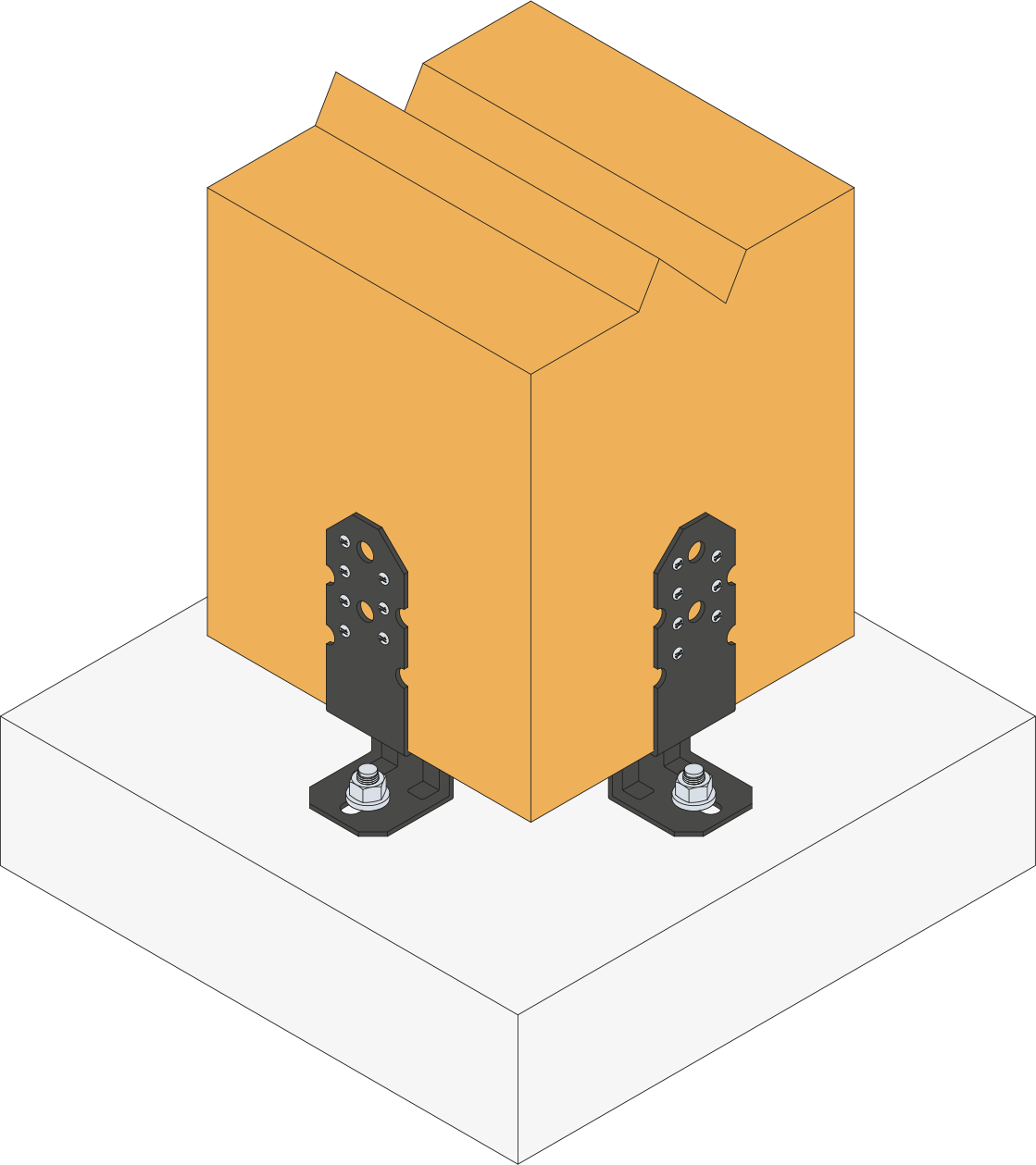 Deze kolomvoet wordt aanbevolen om bouwwerken van het type pergola uit te voeren en biedt veelzijdige montagemogelijkheden. De kolomvoet wordt paarsgewijs gebruikt voor vierkante kolommen met een doorsnede van 70 tot 150 mm. Voor grotere doorsneden (maximaal 250 x 250 mm) wordt aanbevolen vier voeten per kolom te gebruiken.
