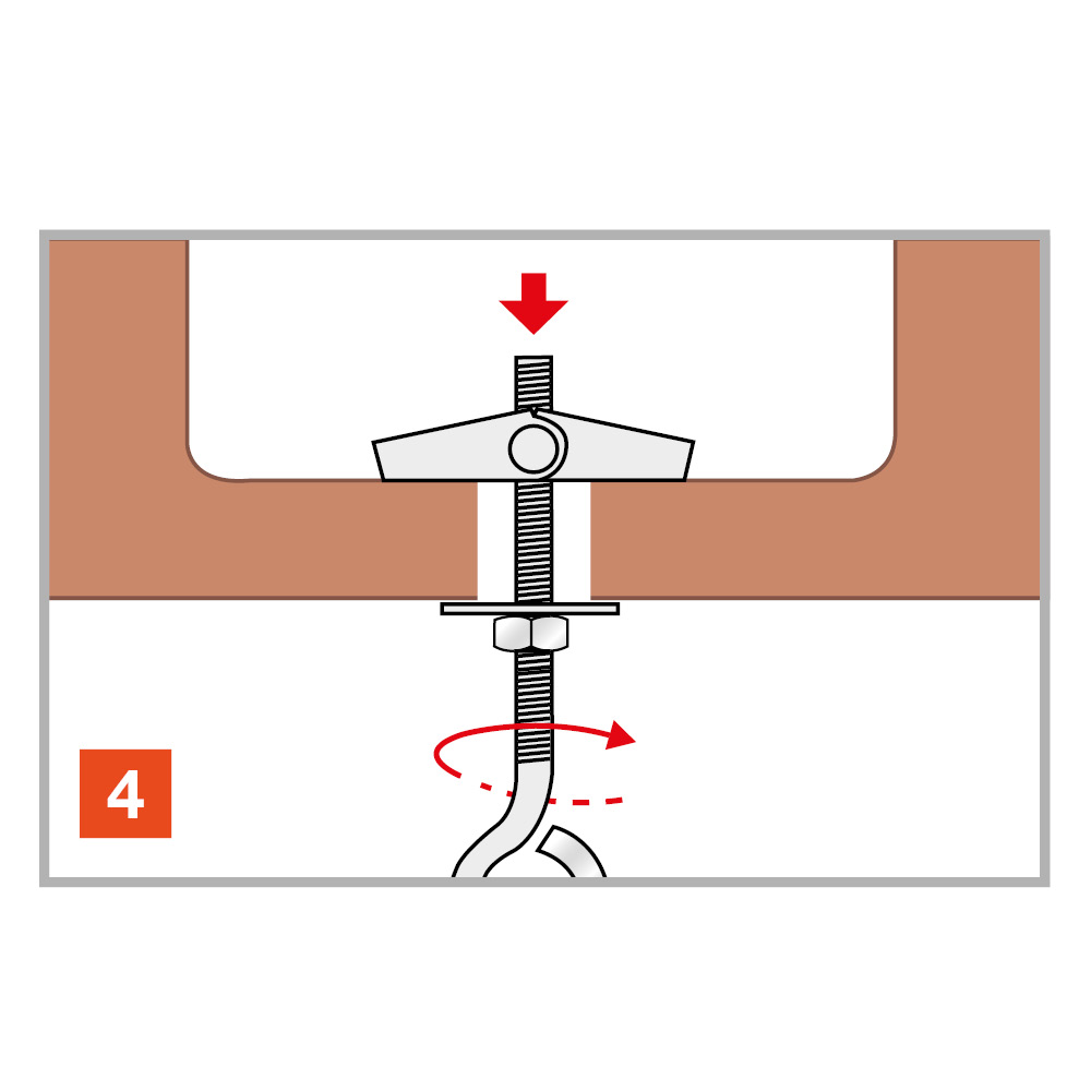 De tuimelplug wordt automatisch in de holle ondergrond gepositioneerd door de spreiding van de vleugels dankzij een veer. De plug is verkrijgbaar met verschillende accessoires.