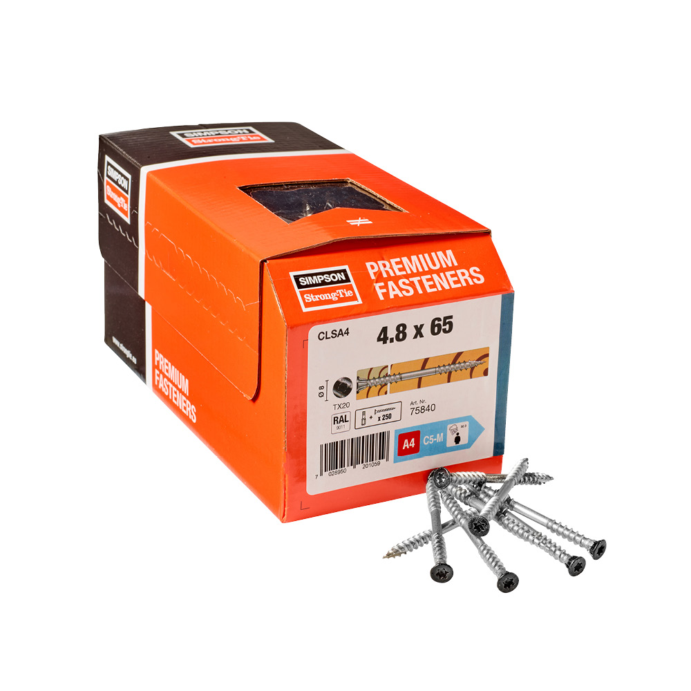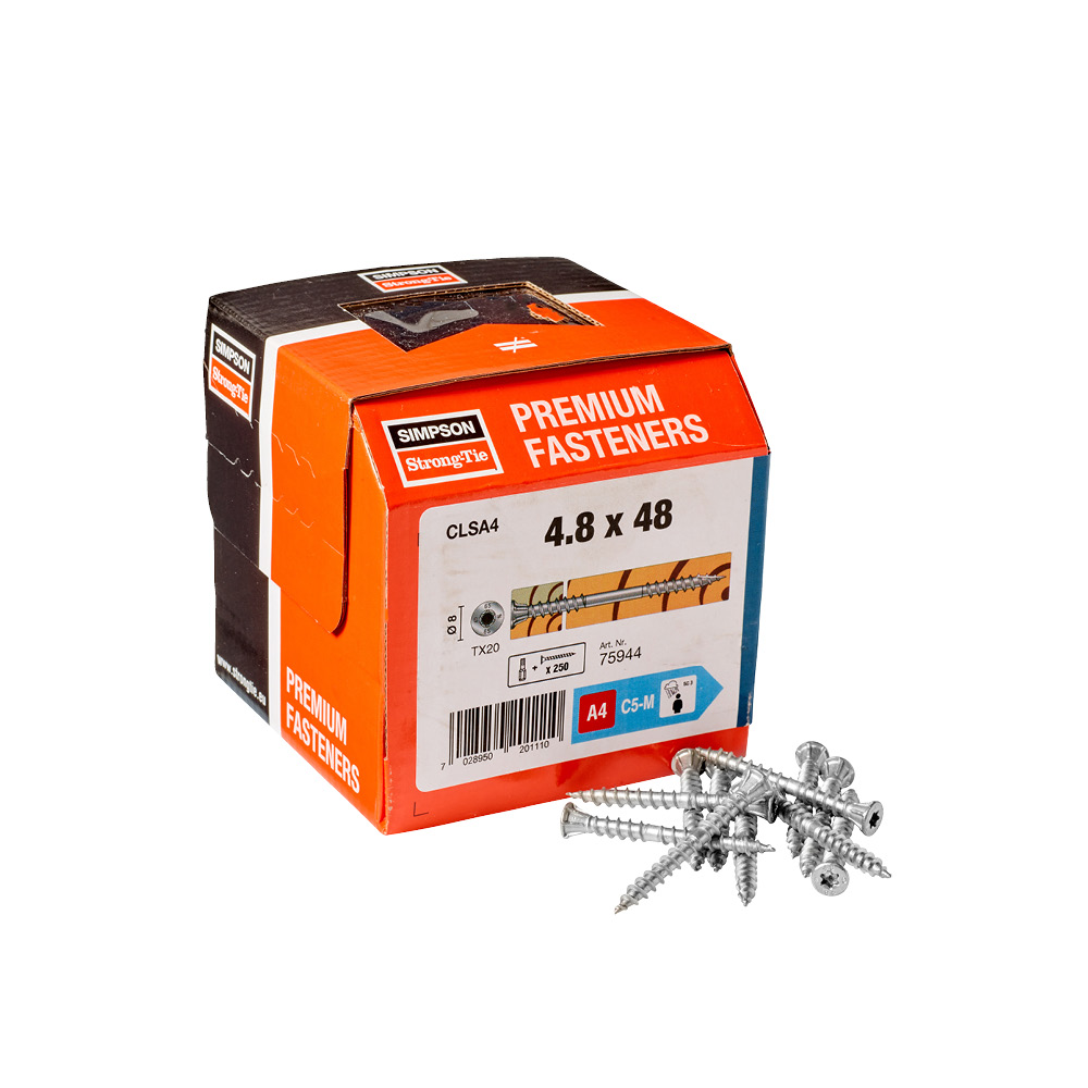 De schroef CLS, in overeenstemming met DTU 41.2, is ontworpen voor de montage van houten elementen zoals opengewerkte of overnaadse gevelbekledingen. Ze kan ook worden gebruikt voor het bevestigen van houten terrasplanken en borstweringen. Deze schroef is gemaakt van rvs A4 en biedt uitstekend weerstand tegen uitwendige invloeden, ook in een zoute en gechloreerde omgeving, en is bestand tegen alle soorten hout, ook tegen behandeld hout.