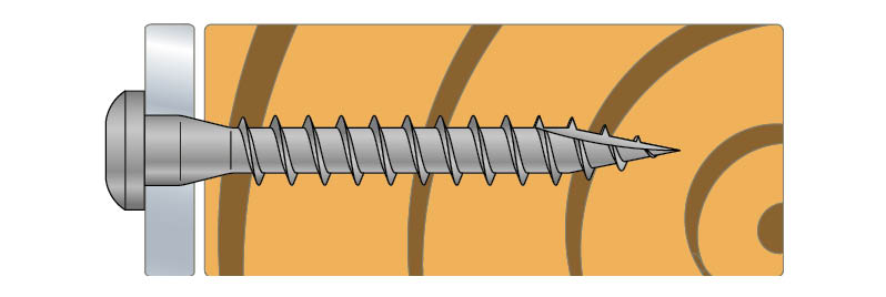 Schroeven vereenvoudigen de plaatsing van hoekijzers en verbinders. De kegelvormige kop garandeert een nauwsluitende passing met de verbinder voor een betere krachtoverdracht. De kop houdt de schroef op zijn plaats tijdens de montage.