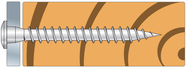 Rvs schroeven Quik Drive®voor verbinders vullen het assortiment verzinkte verbindingsmiddelen aan. Deze schroeven zijn geschikt voor corrosieve omgevingen en mogen alleen met rvs verbinders gebruikt worden.