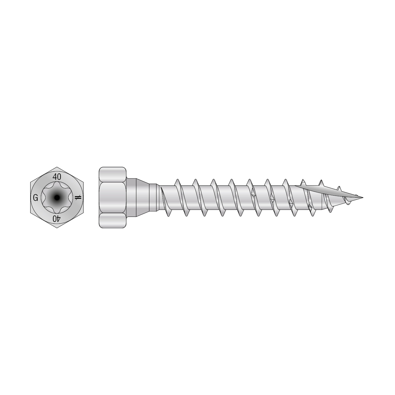 • Zeskantkop: de brede kop zorgt voor een perfecte bevestiging van de staalplaat op hout