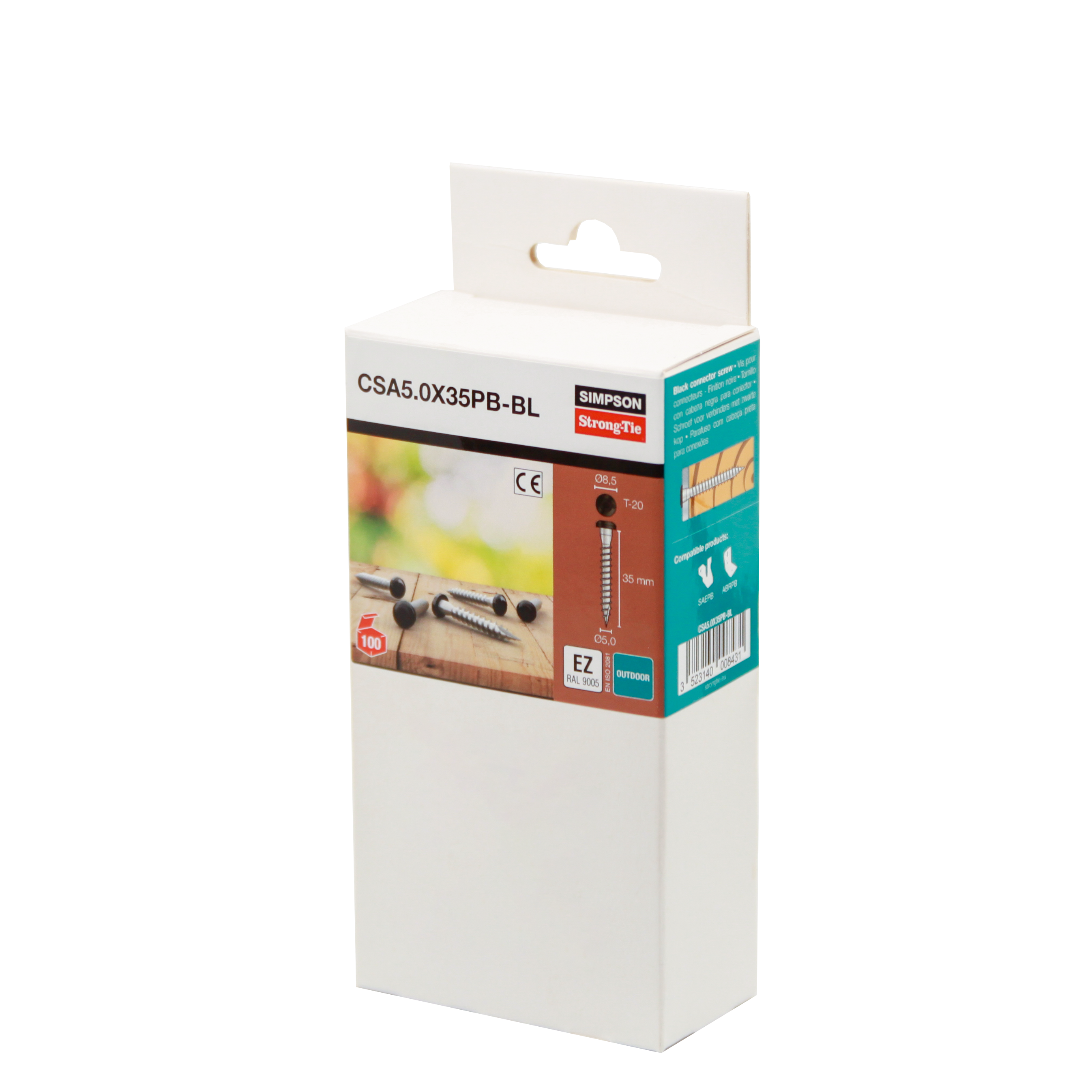 De schroeven CSA5.0x40ZPB zijn ontworpen voor een onopvallende plaatsing van zwart afgewerkte hoekijzers en verbinders. De kegelvormige kop zorgt voor volledig contact met de verbinder. De stervormige aandrijving zorgt voor een goede grip op de schroef tijdens de installatie.
