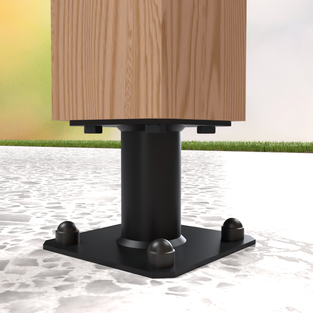 - Plaats het bovenste plaatje van de kolomvoet (afmetingen 100 x 100 mm) onder de kolom.