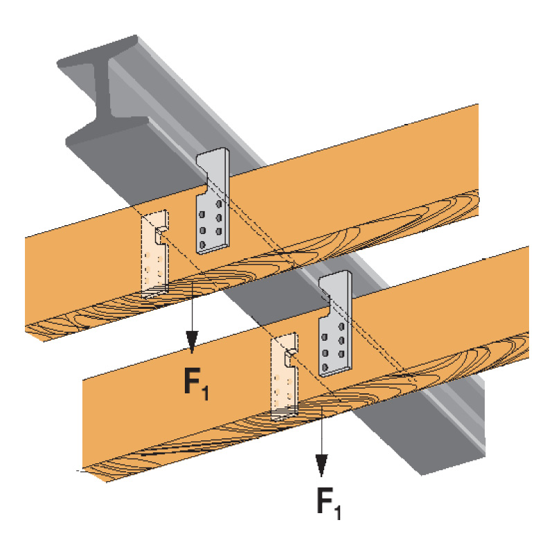 Met de verankering voor IPN kunt u houten dwarsbalken bevestigen aan stalen I-liggers van het type IPN. De bevestiging wordt gegarandeerd door inkepingen.