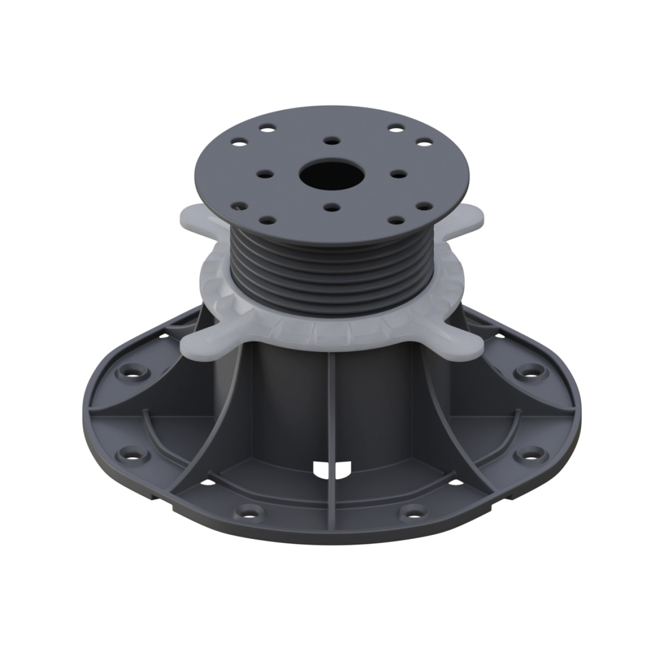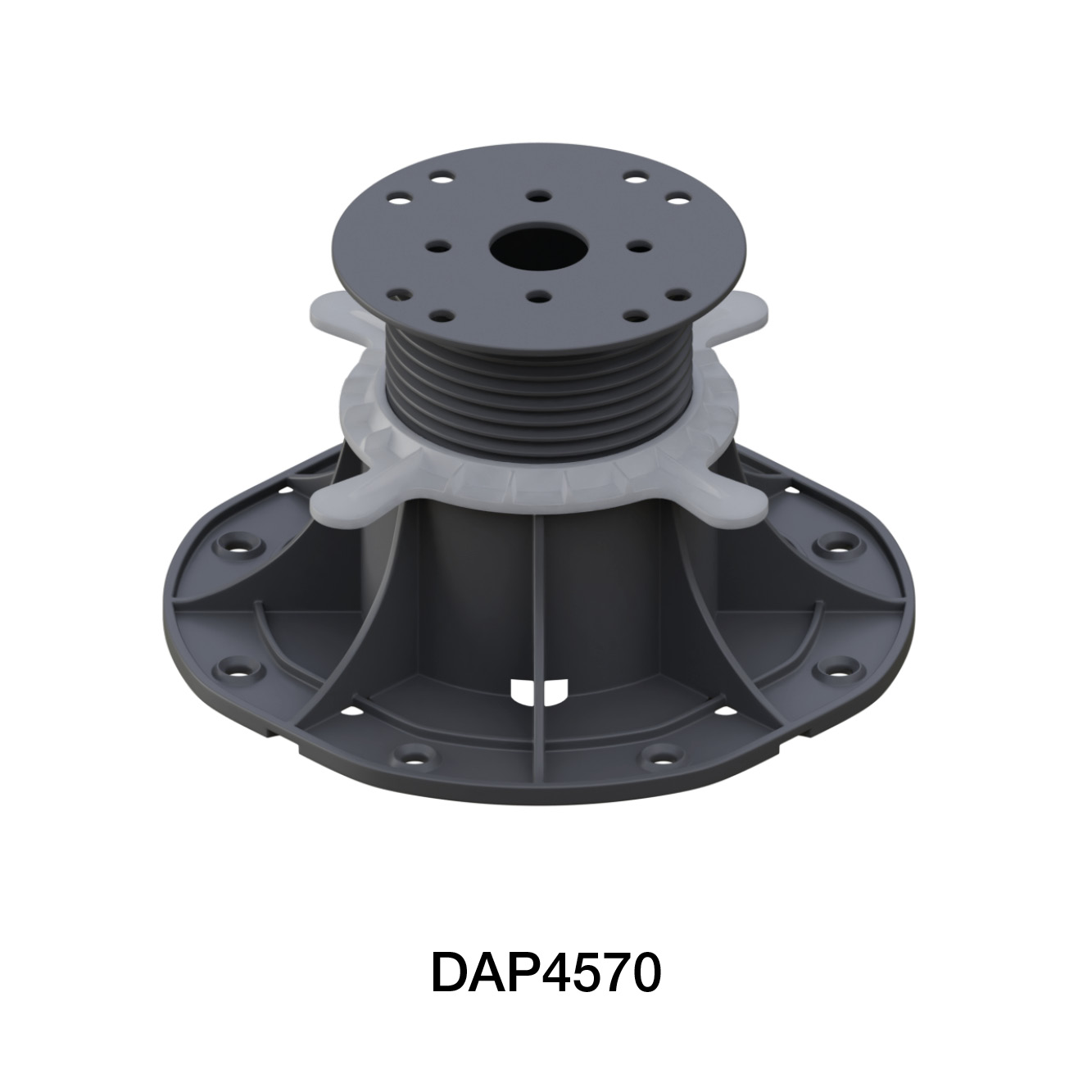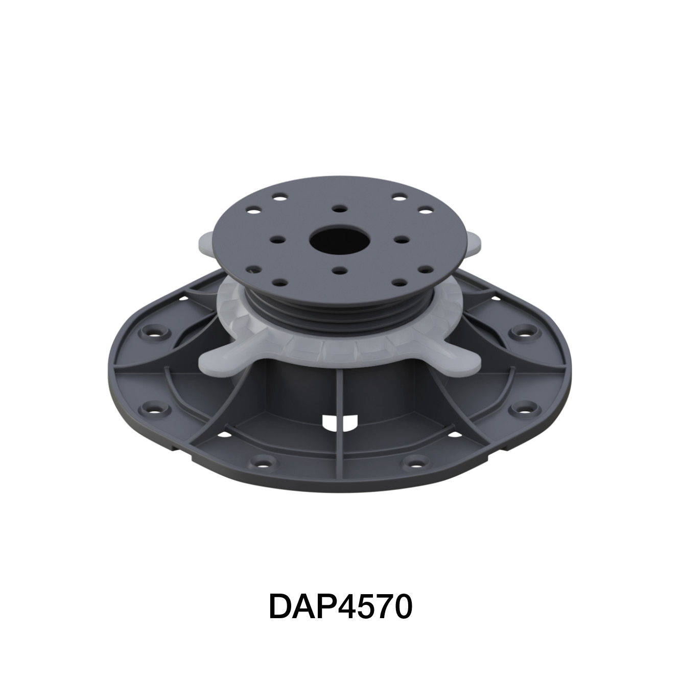 Verstelbare DAP-terrasdragers kunnen worden gebruikt voor de ondersteuning van houten terrasbalken of minerale terrastegels, voor een verhoging van 30 tot 120 mm.