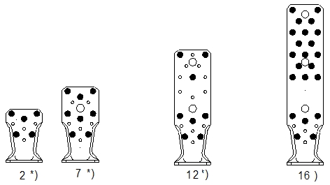 * Raadpleeg de kolommen in de tabel om de karakteristieke capaciteiten te bepalen volgens de lengte van het bevestigingselement dat in flens A wordt gebruikt.