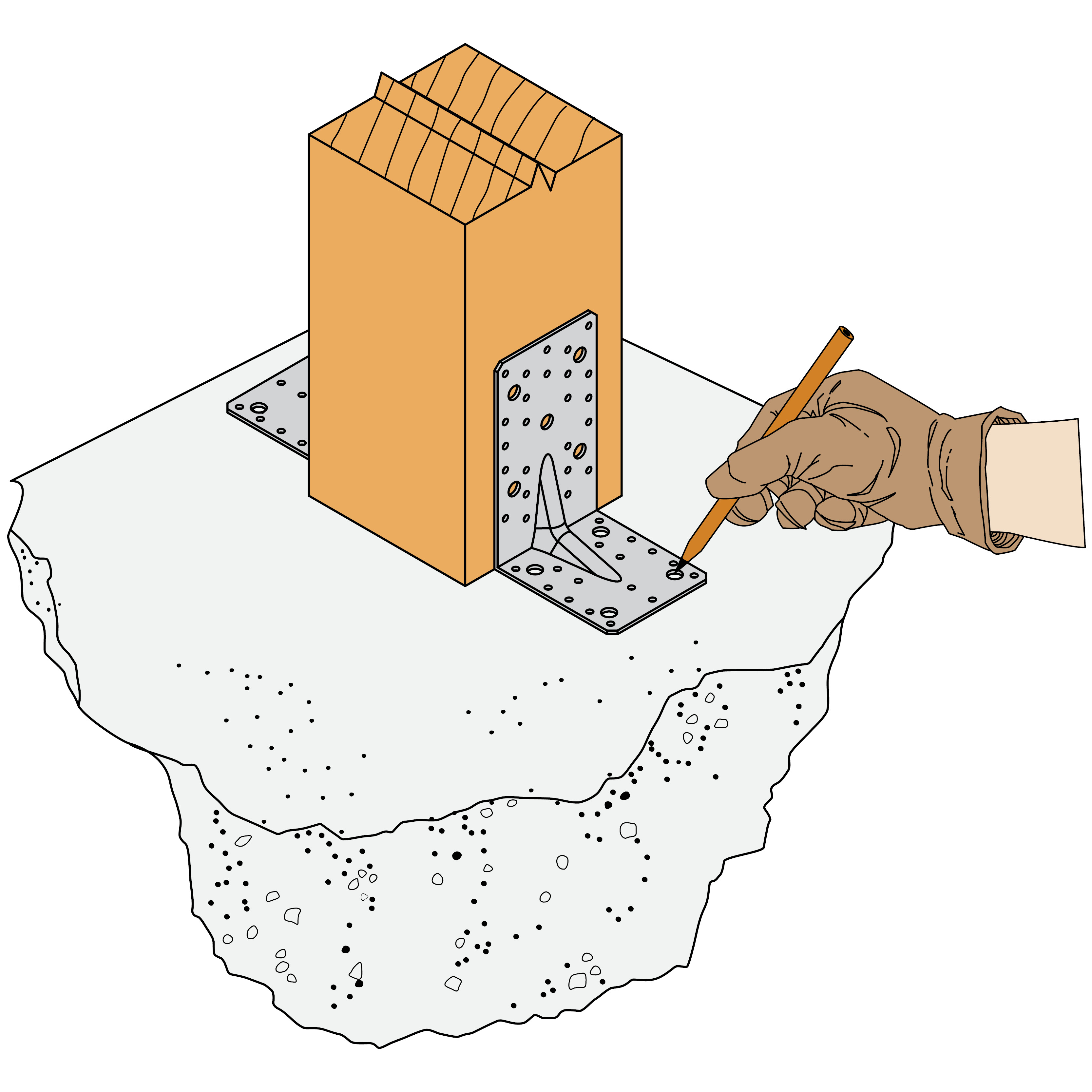 - Indien de ondergrond uit beton bestaat, moet het hoekijzer worden bevestigd volgens de aanbevelingen voor het plaatsen van de gekozen verankering.