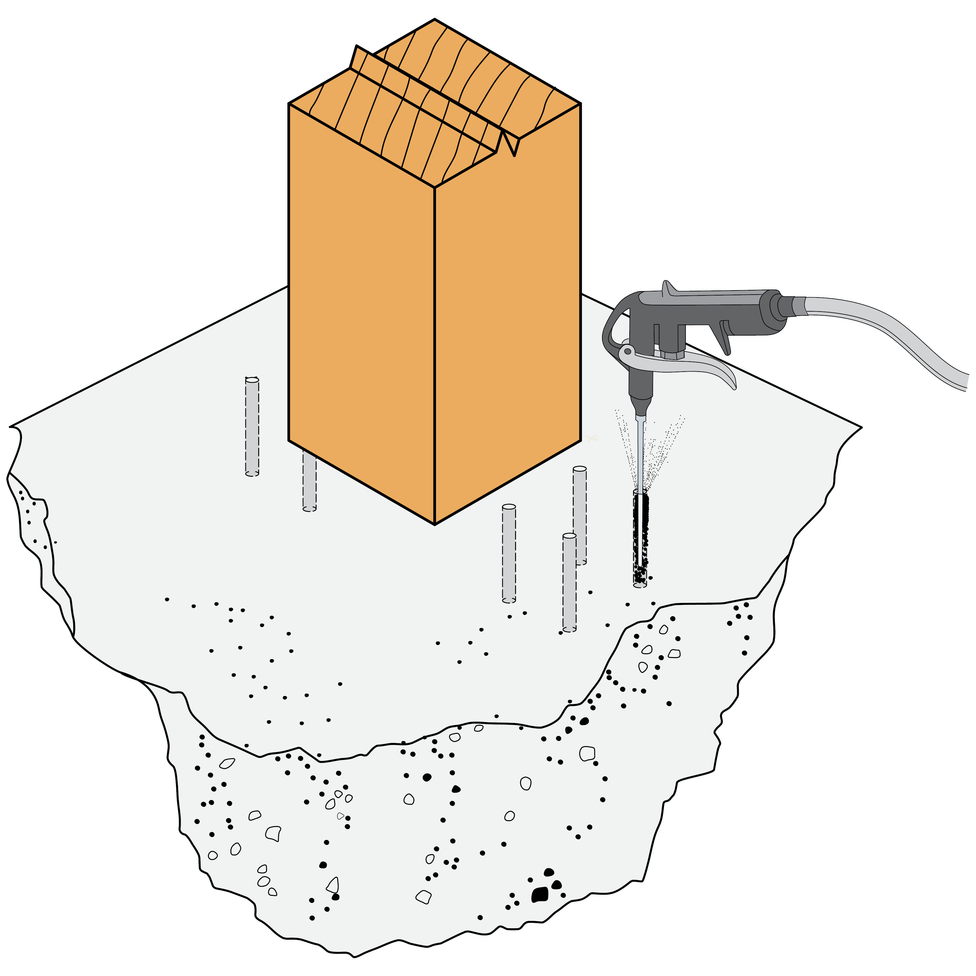 - Chemische verankering : hars AT-HP + draadstang LMAS M10-120/25 of LMAS M12-150/35.
