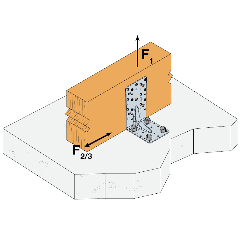Alleen de krachten F1, F2 en F3 voor verbindingen met twee hoekijzers komen aan bod in deze catalogus.