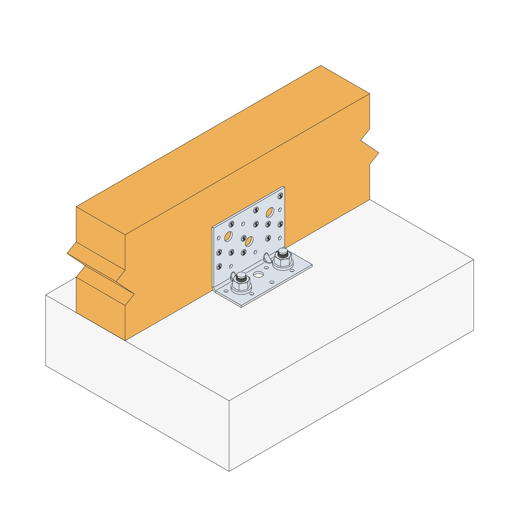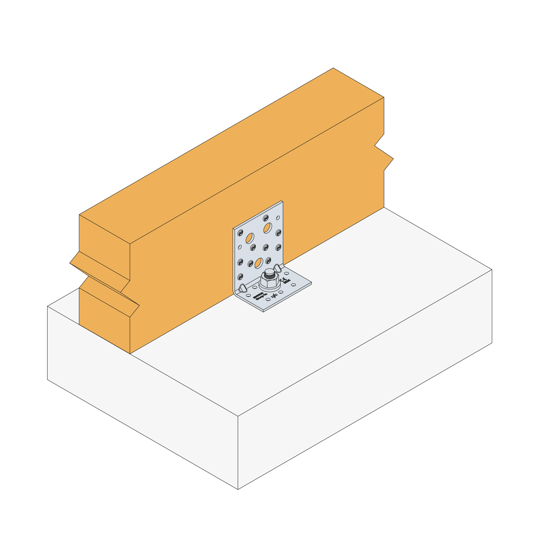 Zie het Simpson Strong-Tie ankerassortiment voor geschikte ankers. Typische ankeroplossingen zijn BOAXII, SET-XP, WA, AT-HP, afhankelijk van het betontype, de hart- en randafstanden.