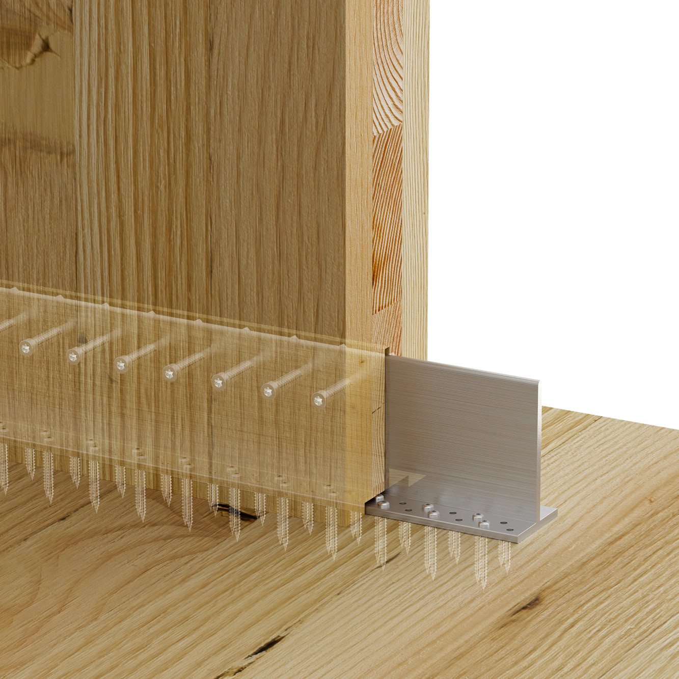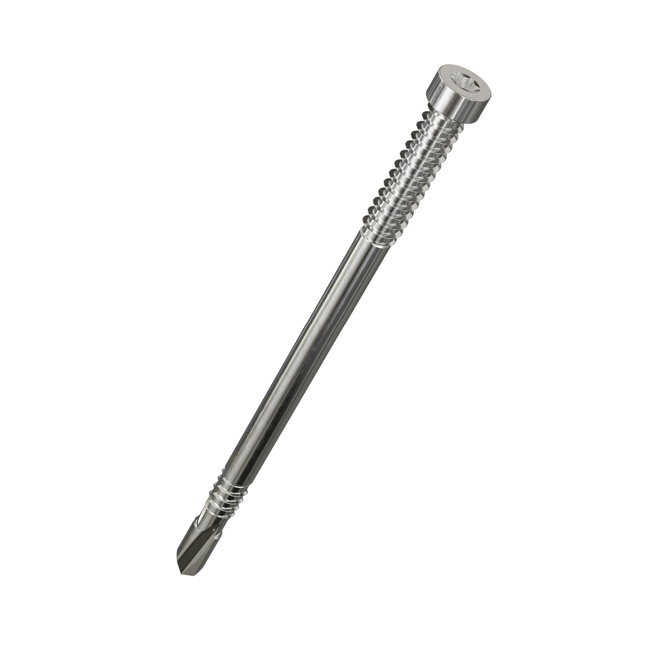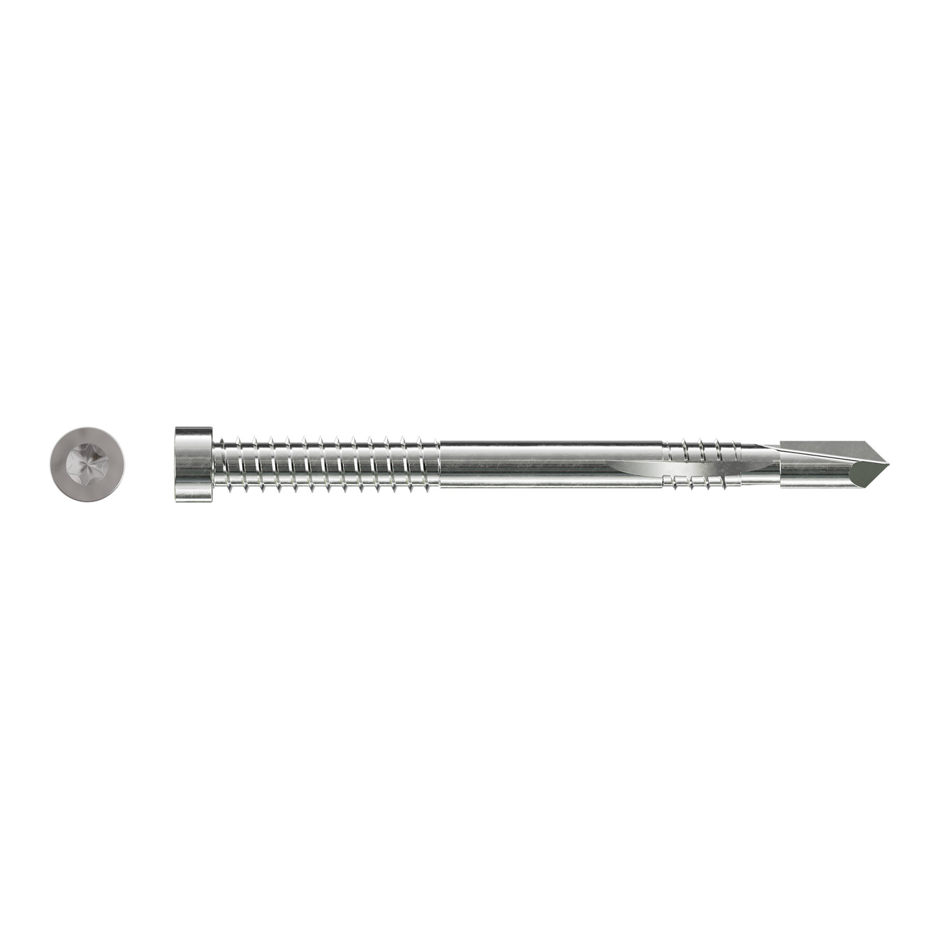 De pen met dubbele schroefdraad heeft een cilinderkop met een T-40-aandrijving met 6 lobben. Het unieke puntontwerp vermindert het risico op splijten van het hout. Dankzij de groef op de onderdraad kan het spaanmateriaal tijdens de installatie worden afgevoerd.
