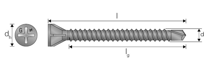 Deze zelfborende schroef wordt aanbevolen voor het bevestigen van vezelcementplaten op stalen gordingen (max. 2 mm dik), in een vochtige buiten- of binnenomgeving.